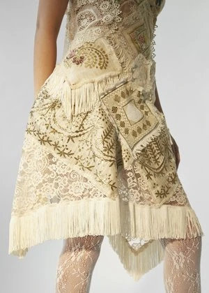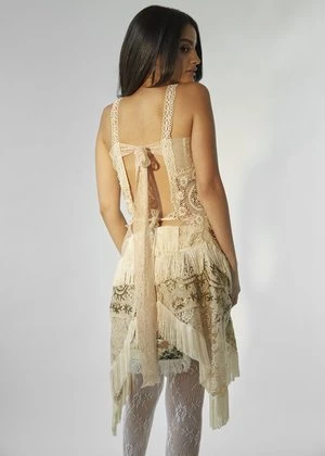 A beautiful light weight summer dress created from a wide array of antique lace and embroidered panels. Each piece has been intricately placed and sewn to create this stunning one-off garment.