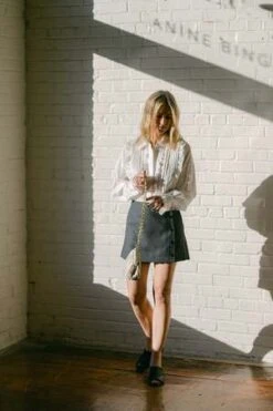 This mini skirt by The Garment features a drop rise and mini hem with pleat detailing at the back.