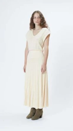 The Kiera Skirt is constructed from a lightweight textured ribbed knit material. The skirt is a pull-on style in stretchy style.