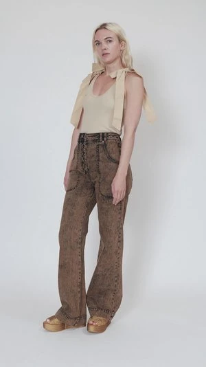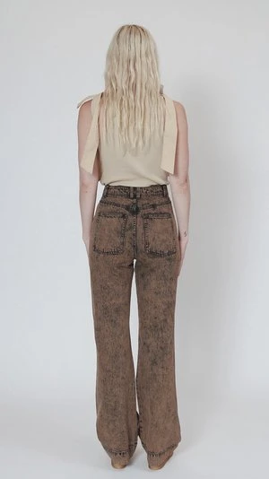 The Milo Jeans have a slightly flared-leg silhouette, high waist and full buttoned closure. They have Ulla Johnson’s signature acid wash which creates a perfect brown shade.