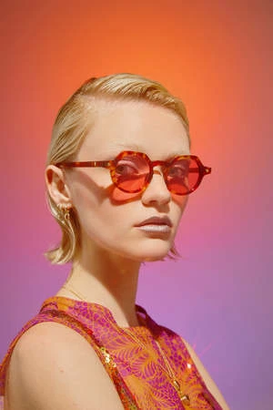 Unisex fit, blunted circular frame w/ minimalist temple design