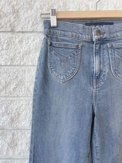 The Veronica Beard Crosbie Wide Leg W/ Western Po in the color Thriller provide a straight-cut silhouette with captivating front pocket details. These denim bottoms offer timeless appeal and pair effortlessly with any blouse.