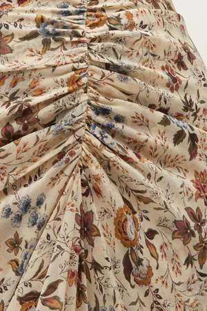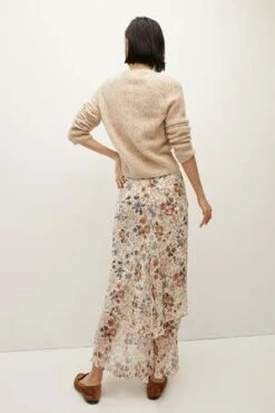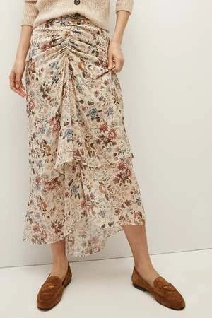Cut from a floaty silk georgette, the Sira skirt is defined by its center ruching and flattering shape. A tiered, handkerchief hem emphasizes the pieces airy feel and gives it beautiful movement. Rendered in an all-season floral, Sira can be worn with sandals and a tank now; with a tonal blazer later.