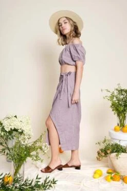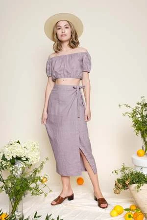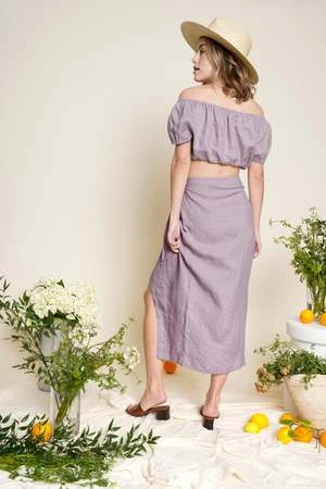 The Valentina Skirt is a mid-length wrap skirt made out of the same amazing linen fabric you love and pairs perfectly with our Valentina Top.