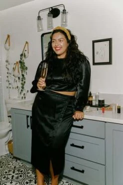 The Valentina Skirt is a mid-length wrap skirt made out of the same amazing tencel, cupro blend fabric you love and pairs perfectly with our Lauren Top. We love a matching set moment!