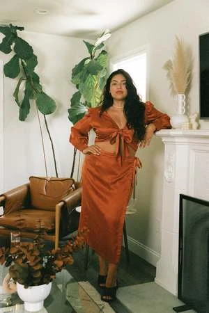 The Valentina Skirt is a mid-length wrap skirt made out of the same amazing tencel, cupro blend fabric you love and pairs perfectly with our Lauren Top. We love a matching set moment!