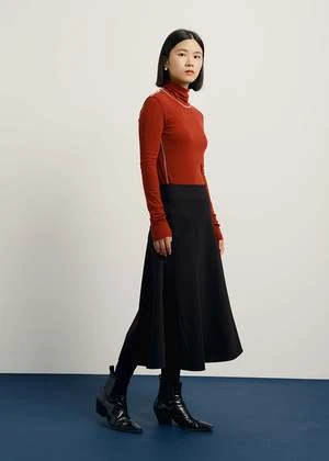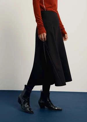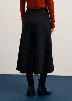 Simple, but elegant, this everyday midi style has a flared design, a smooth, viscose blend construction, and zip closure at the rear.