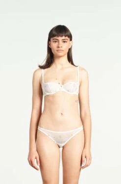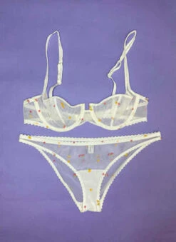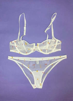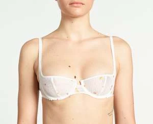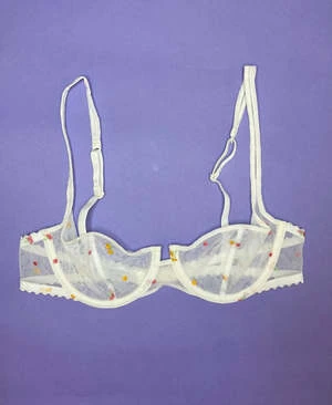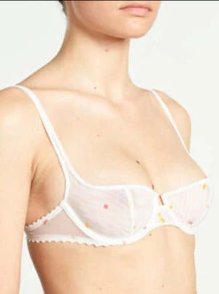 Stretch tulle balconette bra with sweet embroidered delicate flowers. Lifts and is perfect under low neckline tops.