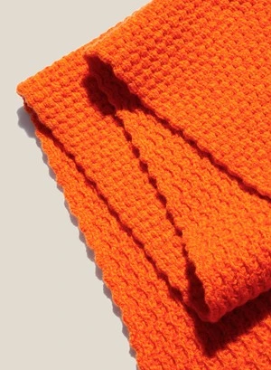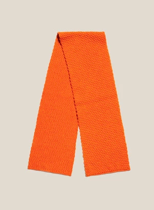 Knitted scarf constructed from superfine lambswool yarn using a popcorn stitch technique. Made in Hawick, Scotland and produced using Hawick’s finest, sustainable yarns.
